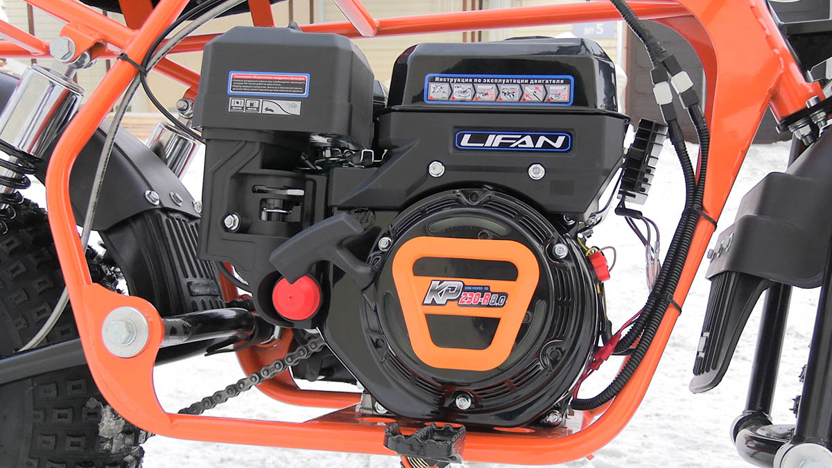 - конструкция мотоцикла очень проста, он состоит из минимума деталей и узлов. Основные узлы, такие как двигатель LIFAN 168F-2, продаются на российском рынке годами, их качество не вызывает сомнений. Детали, например двигателя LIFAN, легко можно купить на рынке при необходимости тех. обслуживания или ремонта (например фильтры). Редуктор с автоматическим сцеплением и его детали также всегда есть в свободной продаже почти повсеместно, и цена деталей не высока (весь редуктор в сборе стоит 3750 руб.).