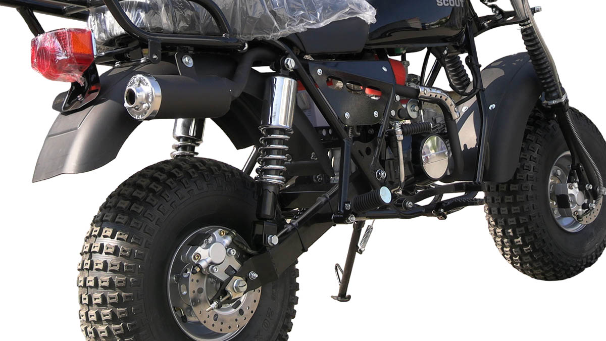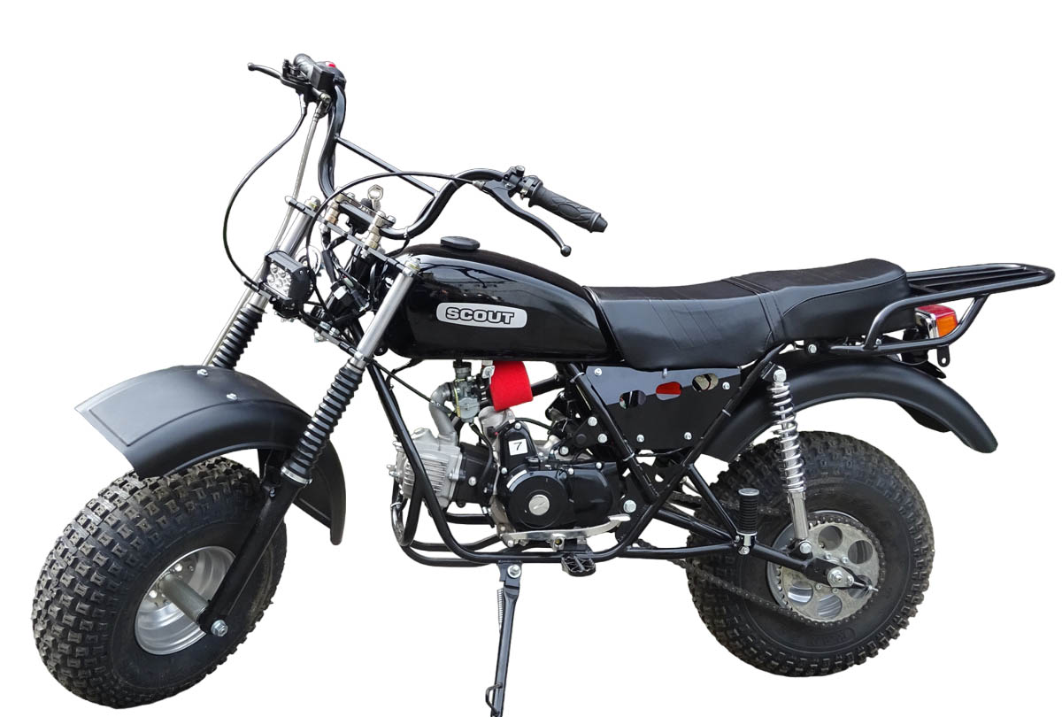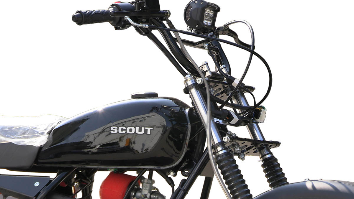 Особенности мотоциклов Скаут-8 СТРИЖМотоцикл Скаут-8 Стриж представляет собой гибрид между мотоциклами Скаут-Сафари и Скаут-3. Объединяет семейство мотоциклов Стриж со Скаутом-Сафари их размер резины - 20х7х8", в тоже время они имеют раму от более крупных мотоциклов Скаут-3. В сочетании это дает большую маневренность и более высокий крутящий момент, соответственно позволяет быстрее ускоряться и преодолевать более сложные препятствия, такие как подъем в гору или грязевые препятствия. Мотоциклы семейства Стриж по цене занимают промежуточное место между мотоциклами Скаут-3 и Скаут-Сафари.