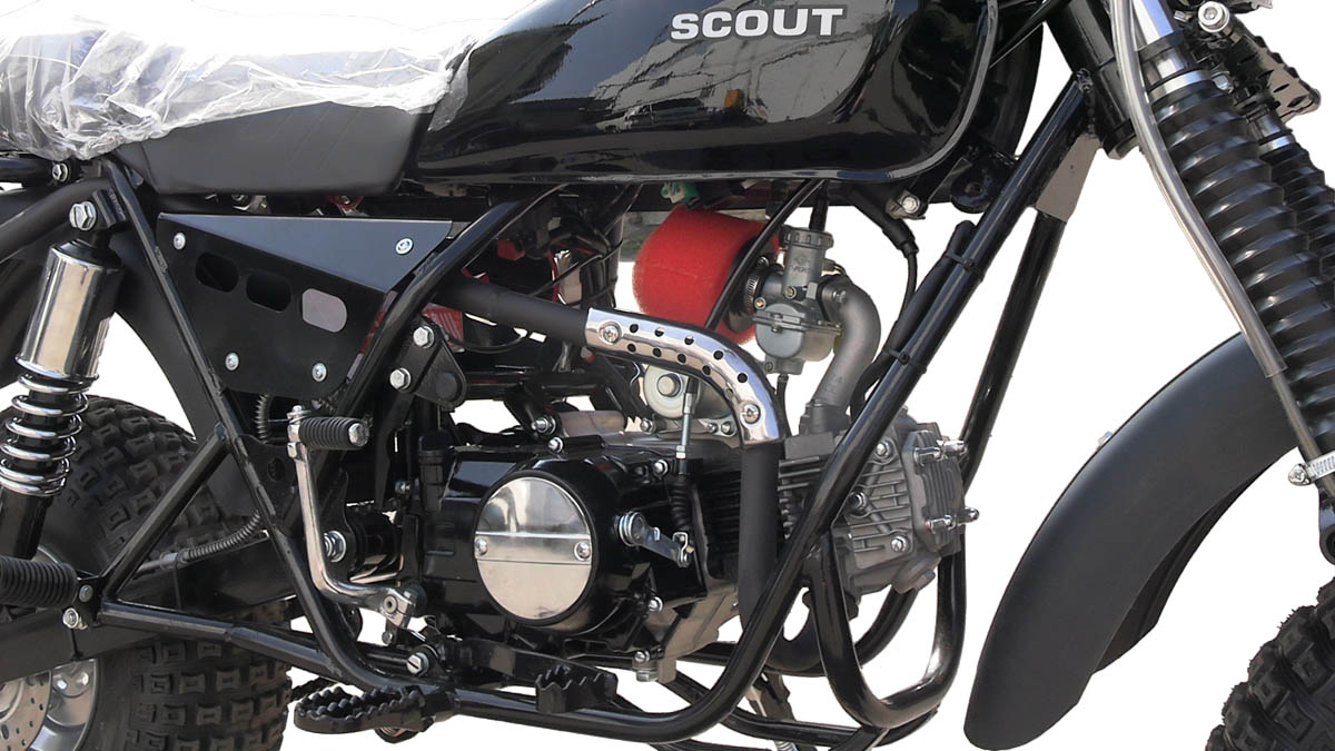 - Вторая версия имеет двигатель 125 см3 аналогичный Скауту-3 и полуавтоматическую коробку передач, с четырьмя передачами.