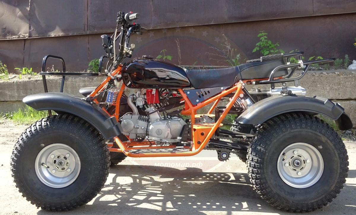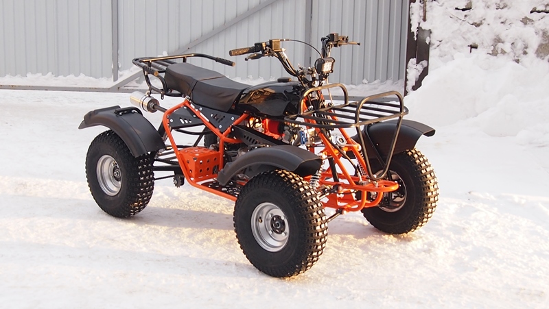 Особенности ATV "МЕХАНИК"ATV "Механик" отличается от остальных ATV тем, что он разработан специально для российского покупателя. Первое его отличие это рама удлиненной конструкции, что позволяет разместиться на ATV двум людям, также этот ATV имеет высокий руль, соответственно он подойдет для людей высокого роста. Основной особенностью "Механика" является независимая подвеска всех колес, что более комфортно для водителя. Рама изготовлена из стандартной российской стали, трубы типа ДУ-20, ДУ-15. Другим преимуществом этого квадроцикла является то, что по цене он сопоставим с бюджетными ATV например популярного класса 200см3 китайского происхождения, "Механик" несколько дешевле. Также этот ATV имеет полуавтоматическую коробку передач: 3 вперед 1 назад, сцепление является центробежным, автоматическим и выжимать ручку на руле не нужно, что очень удобно для пользователя. Такая трансмиссия имеет свои преимущества, например вариаторная трансмиссия содержит ремень вариатора, весьма ненадежный элемент, который может порваться при повышенных нагрузках, например при подъеме в гору с грузом. В "Механике" трансмиссией является КПП, то есть зубчатые передачи, что гораздо более надежно.