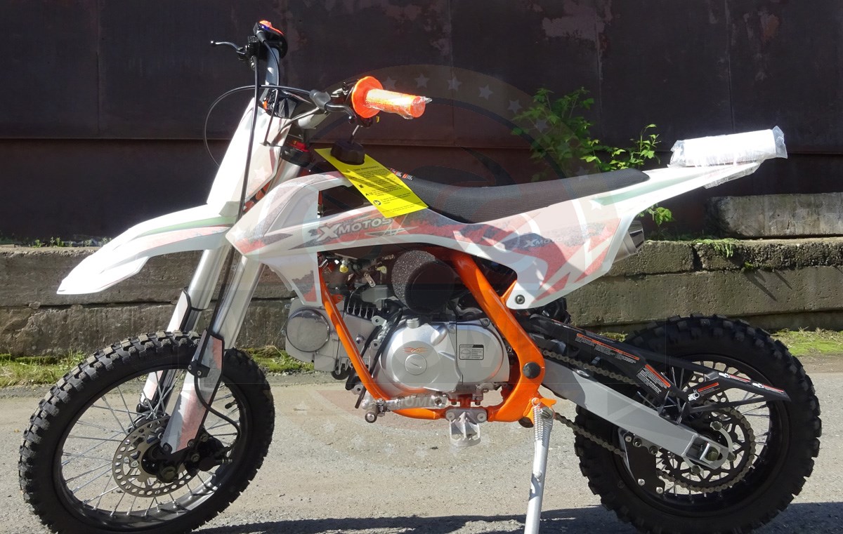 О питбайке X-MOTOS 125 14/12 JETОсобенностью данного питбайка является то, что он имеет размерность колес 14 на 12 дюймов, в отличие от стандартного размера колес 17 на 14 дюймов, это дает следующие преимущества. Этот питбайк имеет стандартный двигатель для питбайков объемом 125см3 и колеса 14 на 12 дюймов делают его легче, соответственно имеет большую удельную мощность, а размер колес дает больший крутящий момент, что позволяет быстро ускоряться и вскарабкиваться в крутые горы. Это спортивный вариант для покатушек, также другие его параметры более спортивного типа, у него отсутствует светотехника и приборная панель, также установлен глушитель типа прямоток. В сумме мы получаем чисто спортивный тип питбайка, на котором могут ездить люди относительно невысокого роста, также плюсом для людей невысокого роста является то, что они могут достать до земли, что очень важно в случае с питбайками, потому что это внедорожный и зачастую грязевой вариант. Что касается подвески, рычагов управления, рулевого управление и конструкции, в этом питбайке все сделано на достаточно высоком уровне, поскольку фабрика X-motos специализируется на производстве именно внедорожных мотоциклов, в том числе и питбайков. Малые габариты этого питбайка позволяют проще его перевозить, в некоторые внедорожники он помещается полностью, также его проще доставать из грязи при необходимости. В сумме все вышеперечисленное дает комфортные ощущения от спортивной езды на компактном мотоцикле.