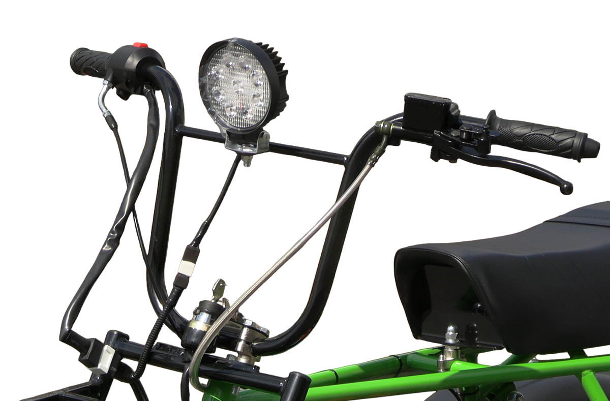 - по сравнению с квадроциклами такого же класса и уровня цены трицикл компактнее и удобнее - он подходит людям любого роста, на него проще залезть и слезть с него.
