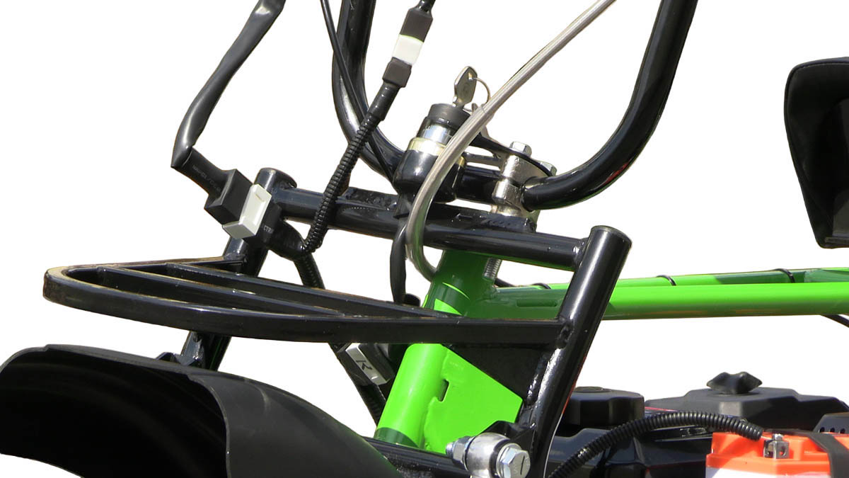 - двигатель с электростартером, аккумулятор в комплекте, светодиодная фара. В бюджетной версии - только ручной стартер.