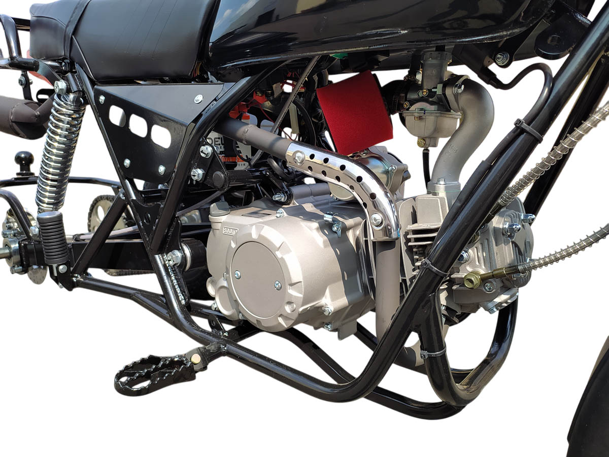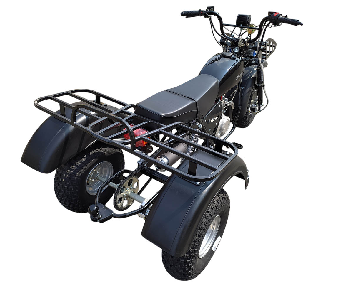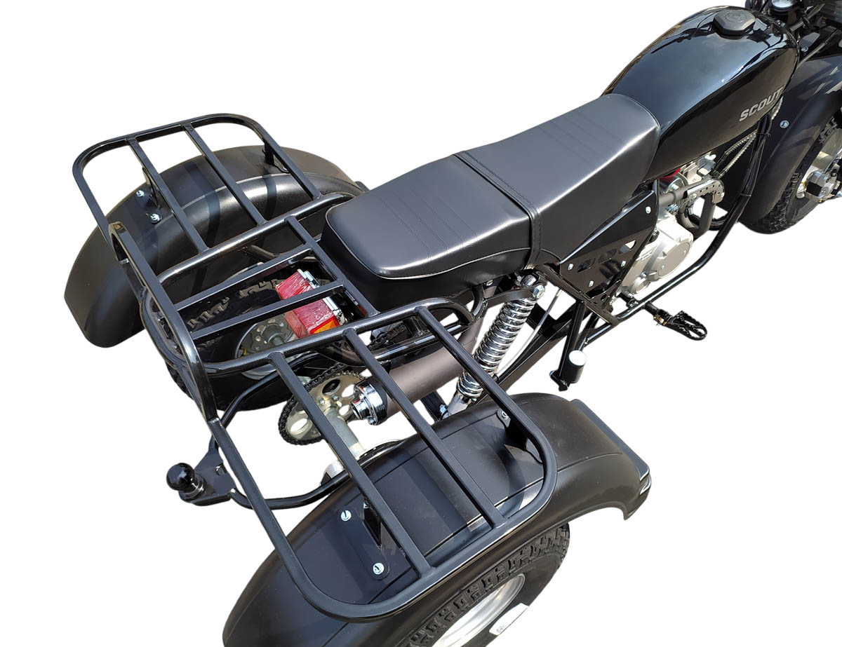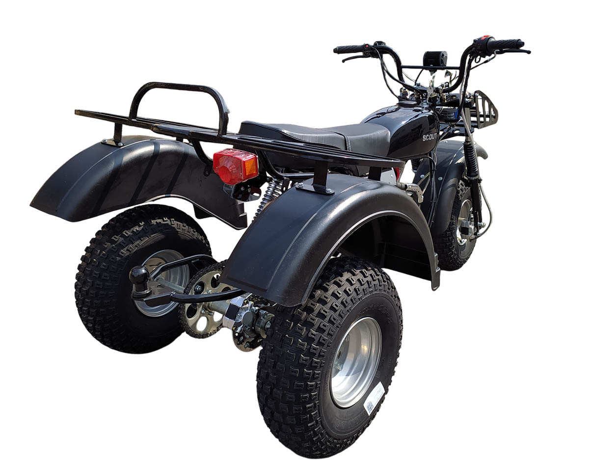 О трицикле Тритон-3Трицикл Тритон-3 является продолжением серии трициклов производства Ижтехмаш, отличается он от трициклов Тритон и Тритон-2 более крупным размером. Тритон-3 имеет раму мотоцикла Скаут-3, помимо этого установлена более крупная резина от Скаут-3, диски - 10 дюймов, резина - 23*7-10". Двигатель аналогичен Скаут-3 Р140, также он аналогичен двигателю квадроцикла Kayo Bull 150, это двигатель с автоматическим сцеплением, имеет реверс и три передачи вперед. Плюсом этого трицикла является то, что он более крупный, двигатель квадроциклетного типа дает большую максимальную скорость, соответственно этот трицикл едет побыстрее и "бодрее" чем Тритон и Тритон-2.