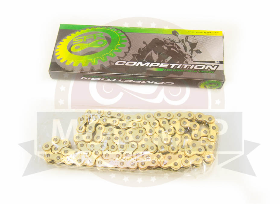 Цепь (420HР) SFR -100 зв. тюнинг в инд. упак. (коробка), СУПЕР УСИЛЕННАЯ., цв.ЗОЛОТО (Альфа) (Н)