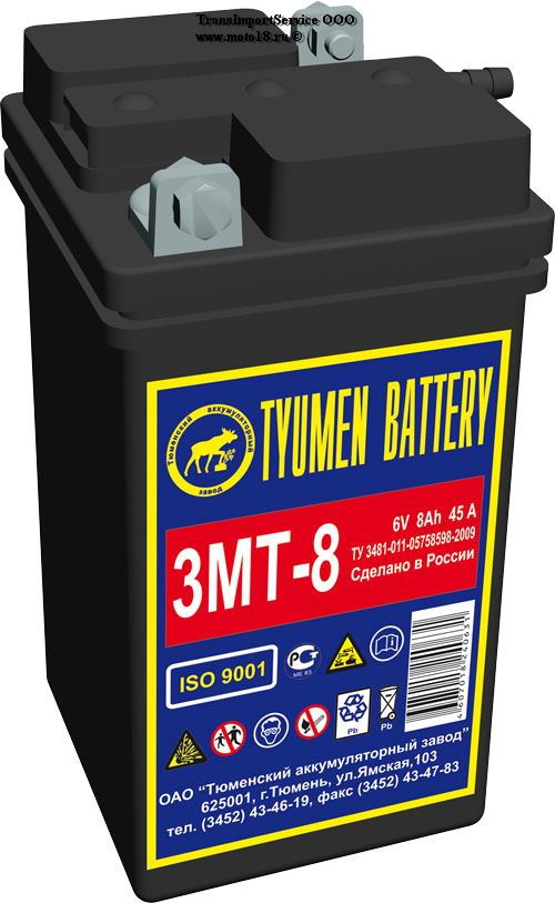 КаталогГлавная / Запчасти для мотоциклов Иж / Запчасти для Иж Планета, Иж Юпитер (общие) / Аккумулятор 6В 8 А/ч, г.Тюмень (3 МТ-8 "Лидер") (83 x 141 x 77) симетрич. пол., Кислот.Сухозаряд.